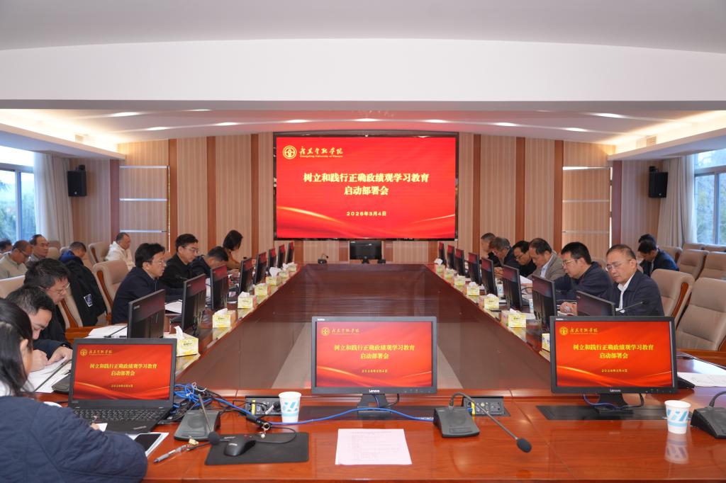 会议强调,要坚持学习教育和推动发展“两手抓、两促进”。将开展学习教育与落实教育强国战略部署、学校“十五五”战略谋划、落实2026年重点工作任务等相结合,将正确政绩观贯穿办学治校全过程、各方面。引导党员干部深刻领悟正确政绩观的丰富内涵和实践要求,推动全面从严治党向纵深发展,为学校事业发展提供坚实组织保障和干部保证,以正确政绩观凝聚攻坚合力、激发干事动能,以正确政绩观推动学校高质量发展迈上新台阶。